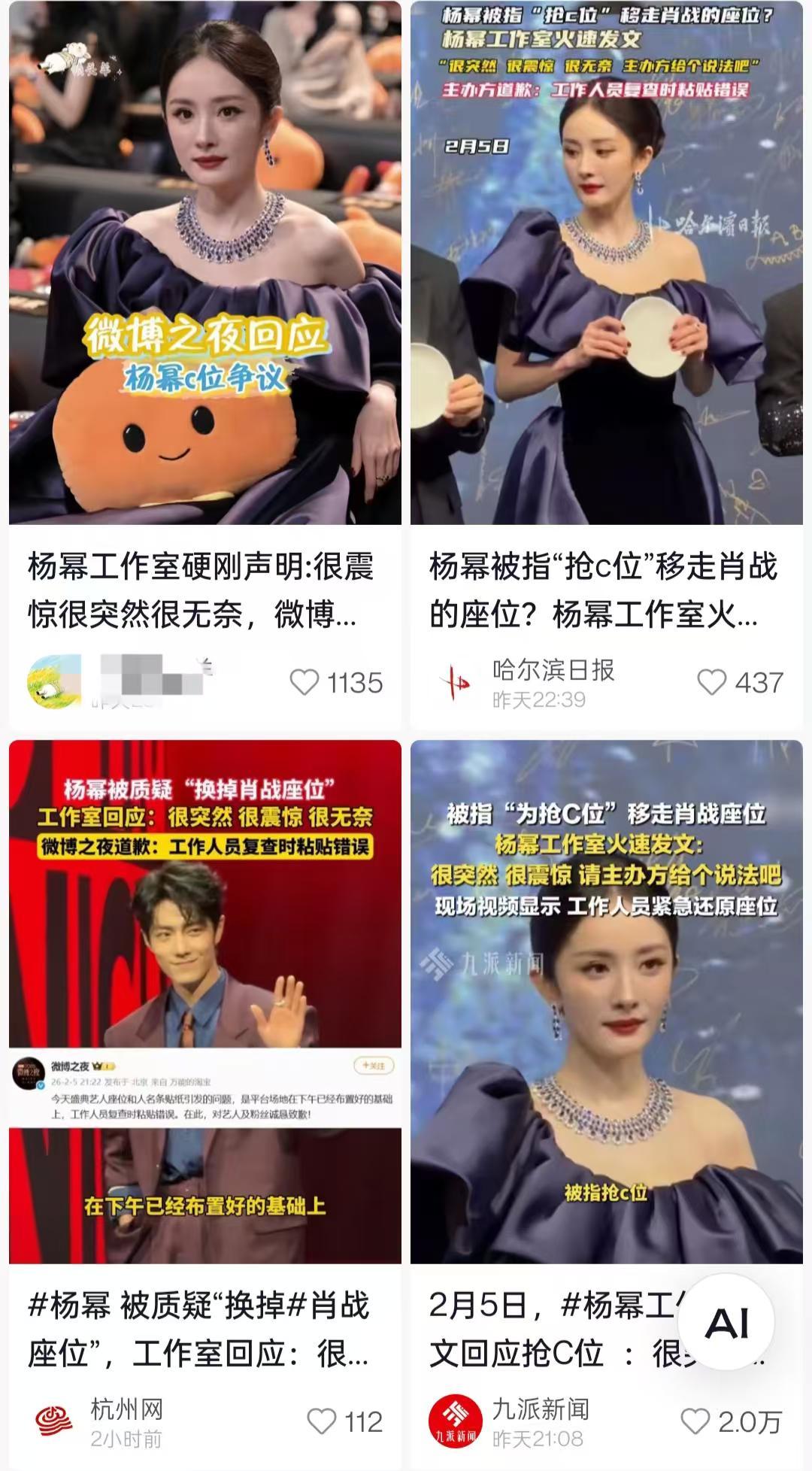 虽然当时杨幂团队发现座位被擅自改动后,及时发微博询问情况,但还是不可避免地遭到肖战粉丝质疑,甚至谩骂。