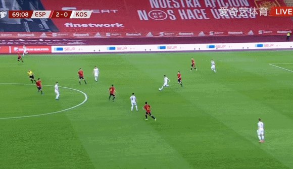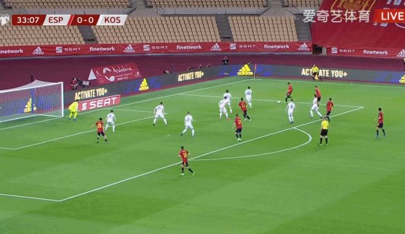 34'阿尔瓦横传,奥尔莫打出弧线球破门,西班牙1-0科索沃!